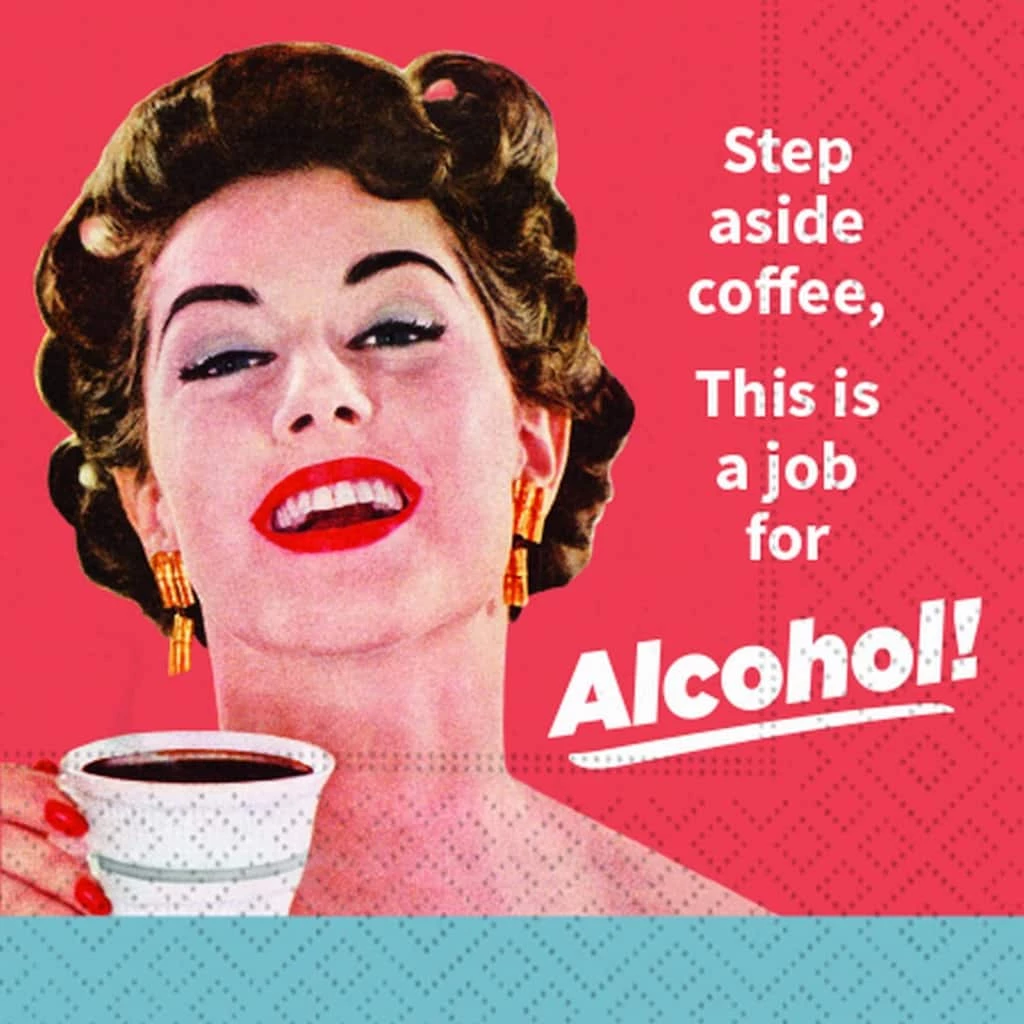 Delight in good friends and good drinks with JAM Paper Cocktail Napkins!Β Share a laugh and a drink with your guests at your next cocktail party with these “step aside coffee, this is a job for alcohol!” napkins.