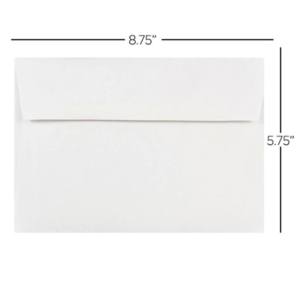 These white booklet envelopes are a classic, go-to choice for all your mailings. Your mail is certain to be seen, as these envelopes are larger than the typical envelope. Place your announcements, greetings, marketing materials, catalogs, flyers, letters, documents, and more without having to bend, cram, or crease. Use for any occasion in the office, home, classroom and everywhere in between! However you use, expect high quality performance and efficacy. Each envelope has a booklet opening, straight flap, gum closure, and smooth finish.