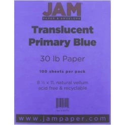 Outlet π― JAM Paper Primary Blue 8.5″ x 11″ 30lb. Translucent Vellum Paper, 100 Sheets π
